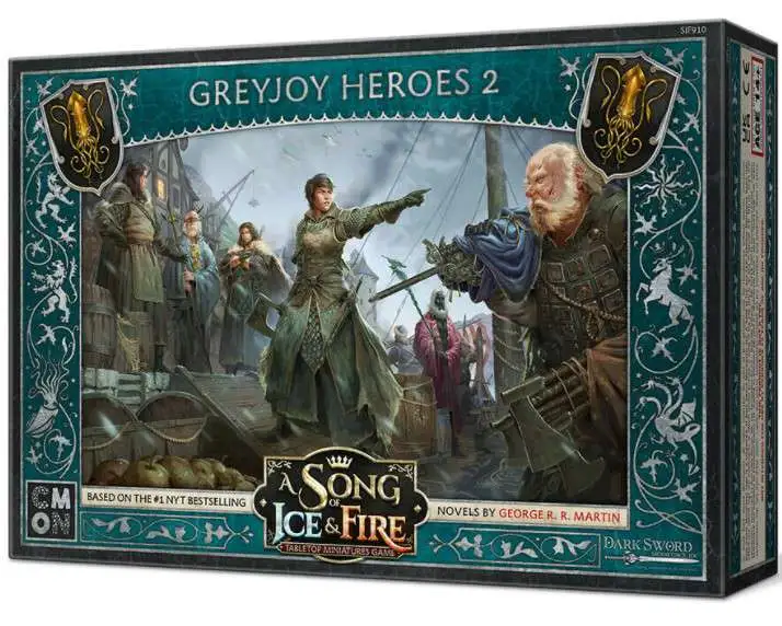 The Greyjoy Heroes 2 box set for the A Song of Ice and Fire: Tabletop Miniatures Game gives House Greyjoy players lots of new options for their forces. The set contains new unique characters, including both UAs and NCUs, with several new options for army Commanders as well. Each one has their own goals, but all are working for the greater good of House Greyjoy.
