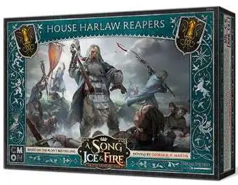 The sigil of House Harlaw is a silver scythe. The House Harlaw Reapers have taken that sigil and turned it into an actual weapon of war. Agricultural scythes make poor combat weapons, but the Reapers have adopted using long-handled axes with equally massive blades. These grisly instruments can mow down men in combat the way a regular scythe can mow down wheat in the field. House Greyjoy is putting them to use, clearing the battlefields of enemies.