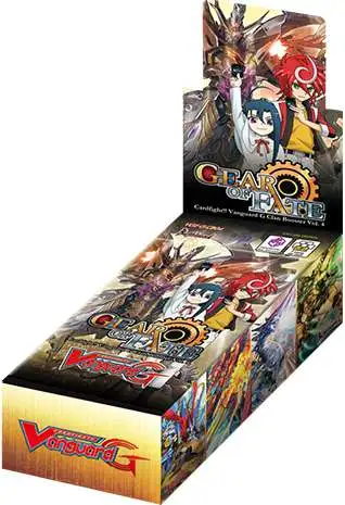 The VGE-G-CB04 [Gear of Fate] Clan Booster features the > clan that is at the heart of the events that are unfolding in the Cardfight!! Vanguard G Stride Gate animation, and includes new trump cards for the final confrontation between our protagonist Chrono Shindou, and his nemesis Ryuzu Myoujin. Cards that will improve the simultaneously-released [True Zodiac Time Beasts] Trial Deck are also included!