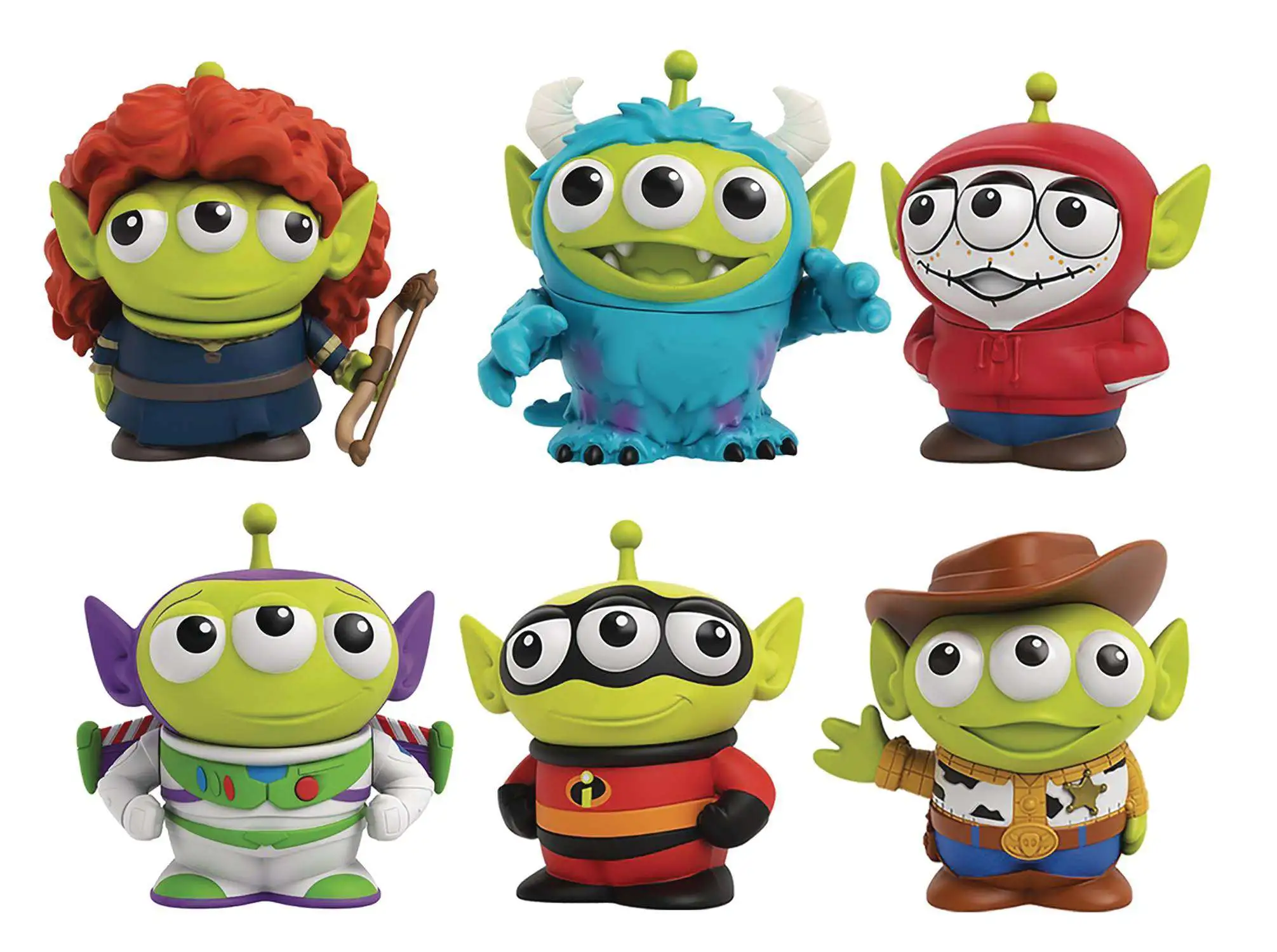 Enjoy the beloved Pixar Aliens like never before in disguise as characters from across the Pixar universe! These hilarious mashups include Buzz Lightyear, Woody, Mr. Incredible, Boo, Sulley, Miguel, Remy, Nemo, Anger, Merida and more to come each in their iconic character outfits with stylized Alien faces! Adorable, colorful, and totally unique, the 3-inch scale figures will inspire creative movie play and new storytelling. Collect all the irresistible characters, and gift them to your favorite fans. They bring smiles wherever they go.