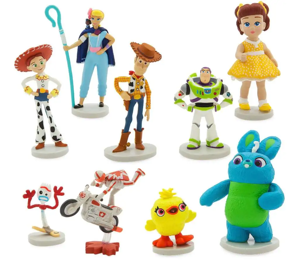 The beloved veterans of the first three Toy Story movies, Buzz and Woody, are joined by favorites Jessie and Bo Peep, and some of the new characters from Disney and Pixar’s Toy Story 4, with this nine-piece deluxe figure set.