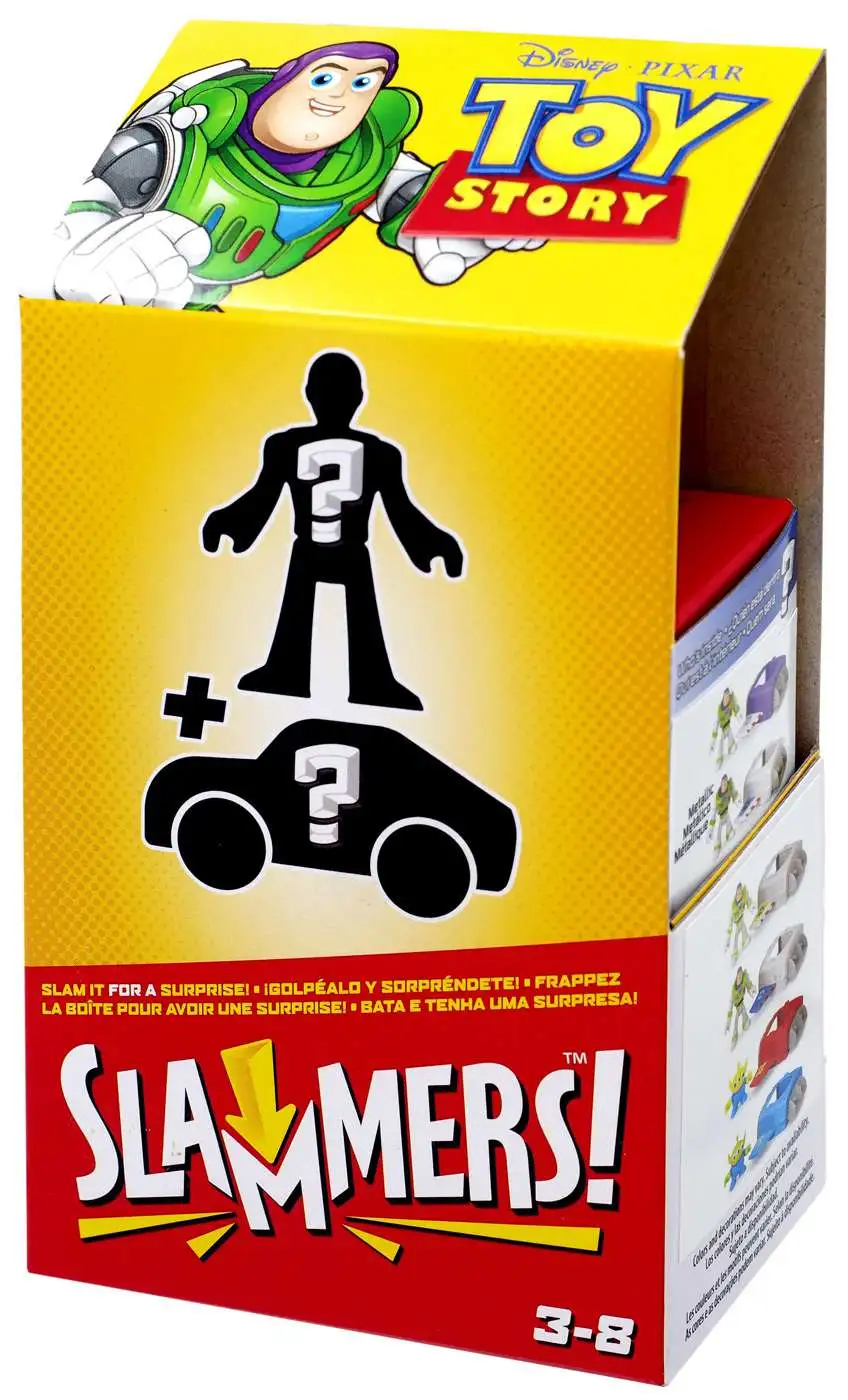 Preschool kids can really get in on the action with this Toy Story Slammers vehicle and figure unboxable set from Fisher-Price! Rip the tab, slam the box down and surprise! Discover a mystery Toy Story figure inside. Figure is a mystery surprise and could be a variation of either Buzz Lightyear or an alien.
