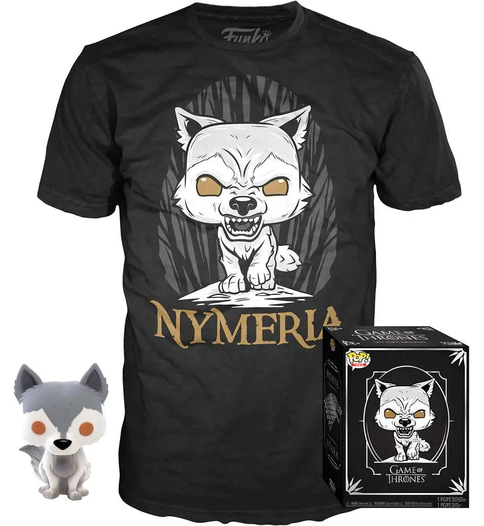From Funko’s stylish line of Pop! Tees, this black shirt features Nymeria, Arya Stark’s direwolf, from Game of Thrones, ready to defend in that fun, and funky, stylized Pop! look we all love. This box set also includes an exclusive Pop! vinyl figure of a Nymeria to add to your Game of Thrones collection. We wouldn’t recommend crossing her wolf pack in the Riverlands, unless of course you’re Arya!