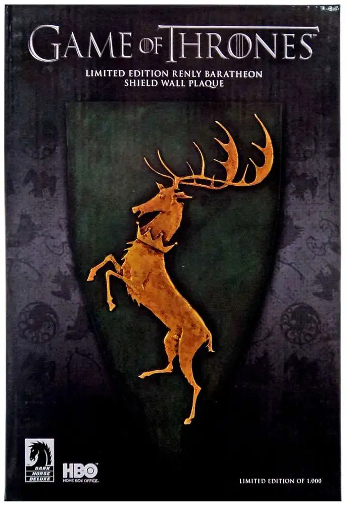 Renly Baratheon, Lord of Storms End, contests for the Iron Throne with his brother Stannis. For his personal sigil, Renly altered the baratheon stag to a golden crowned stag on a field of green.