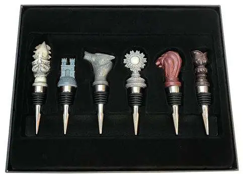Featuring 6 wine stopper sigils in total from houses Frey, Greyjoy, Karstark, Lannister, Stark, and Tyrell.