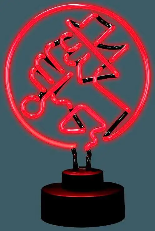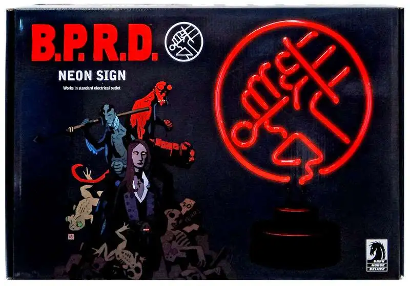 Reveal your secret membership in the world’s most elite covert organization with our new BPRD neon sign. The logo for the Bureau for Paranormal Research and Defense is instantly recognized by Hellboy fans and readers of Mike Mignola’s vast comic universe. The light glows red with a black base. Can be displayed on a flat surface or hung. Includes cord and plug.
