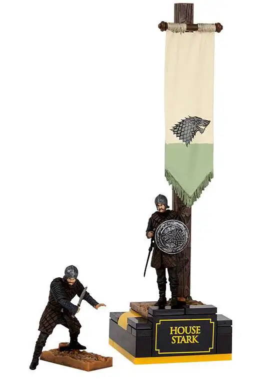 Help show support for each House’s claim to the Iron Throne with buildable banner packs inspired by HBO’s Game of Thrones television series! Each banner pack includes two figures, a banner with family crest and sigil, a detailed base with the House name, customizable weeds, and dirt.