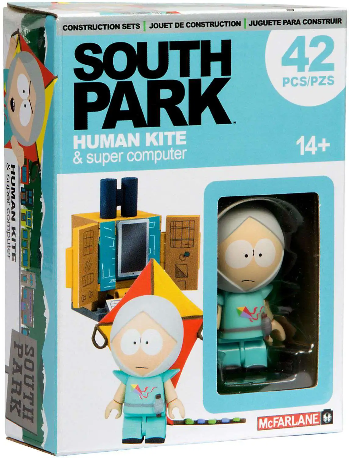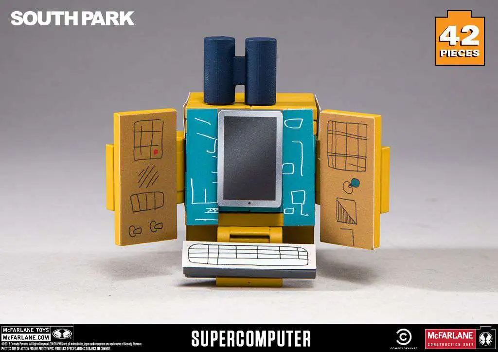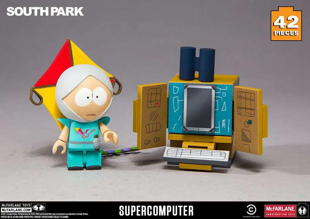 Buildable “supercomputer” micro set inspired by the South Park television series. Construction set features a buildable “The Human Kite” Kyle figure and comes with scaled supercomputer based off authentic scenery from the “South Park: The Fractured But Whole” video game.
