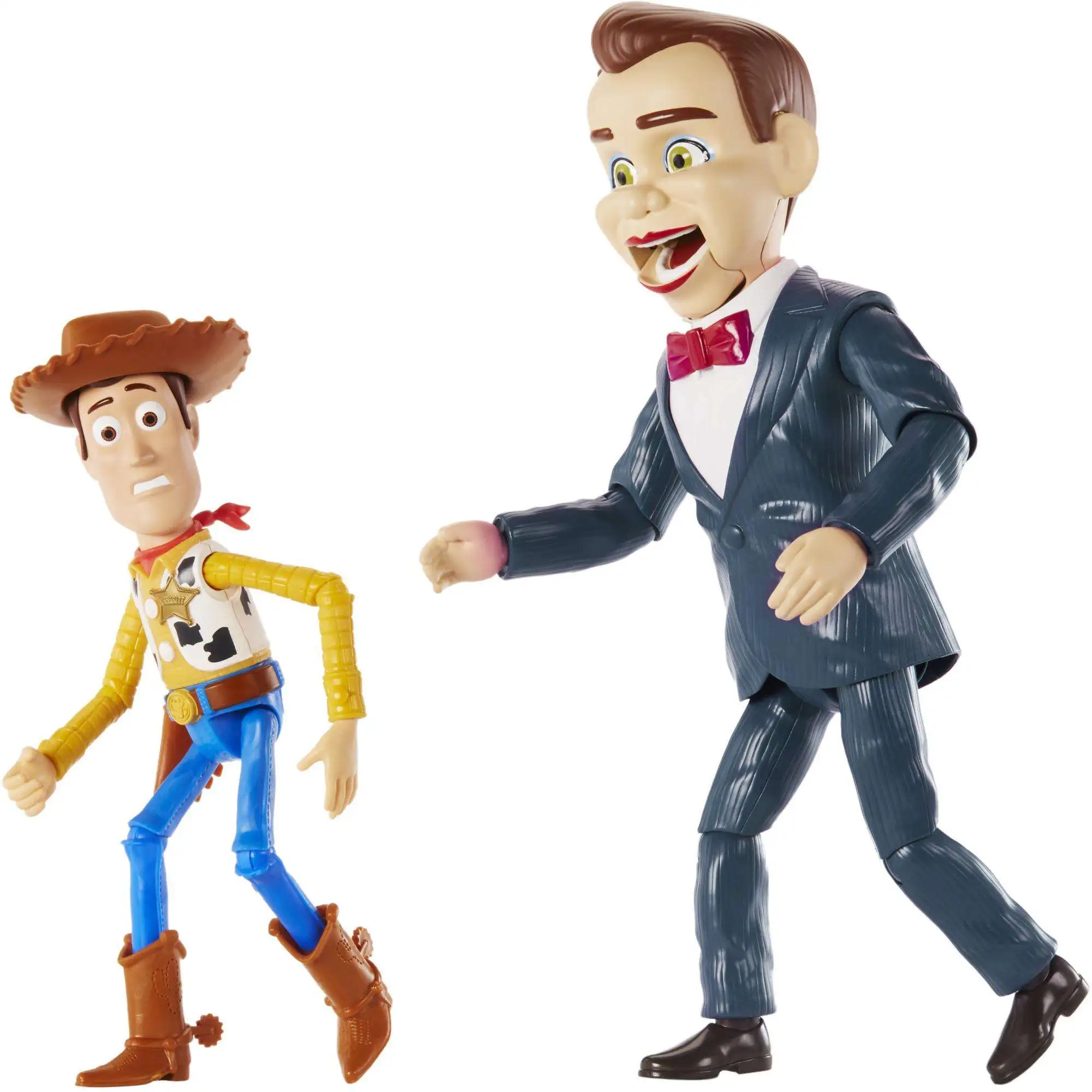 Recreate exciting Disney Pixar Toy Story 4 scenes with Woody and Benson together. In the new movie, the old-fashioned ventriloquist doll is one of Gabby Gabby’s faithful companions. The debonair gentleman exudes polished formality in his black suit, bowtie and white shirt, but he never speaks. Recreate the characters’ creepy exchanges from the antique shop by manually moving the dummy’s mouth! Woody has a concerned expression as he struggles to remain calm. Both figures are exclusive and only available in this two-pack! This unique Toy Story set makes a special birthday gift for fans of all ages.