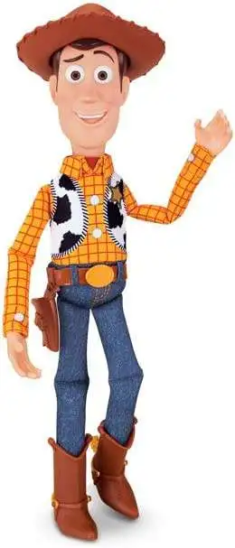 Woody is outfitted from top to bottom in his classic cowboy look! Soft body with sculpted head, hands, boots & hat! Pull string on back to activate talking! Pull again and again for more sayings! Comes with Removable cowboy hat accessory. Figures features Western look with vest, kerchief, boots & holster. Approximately 16″ Tall Age Range: 4+ years