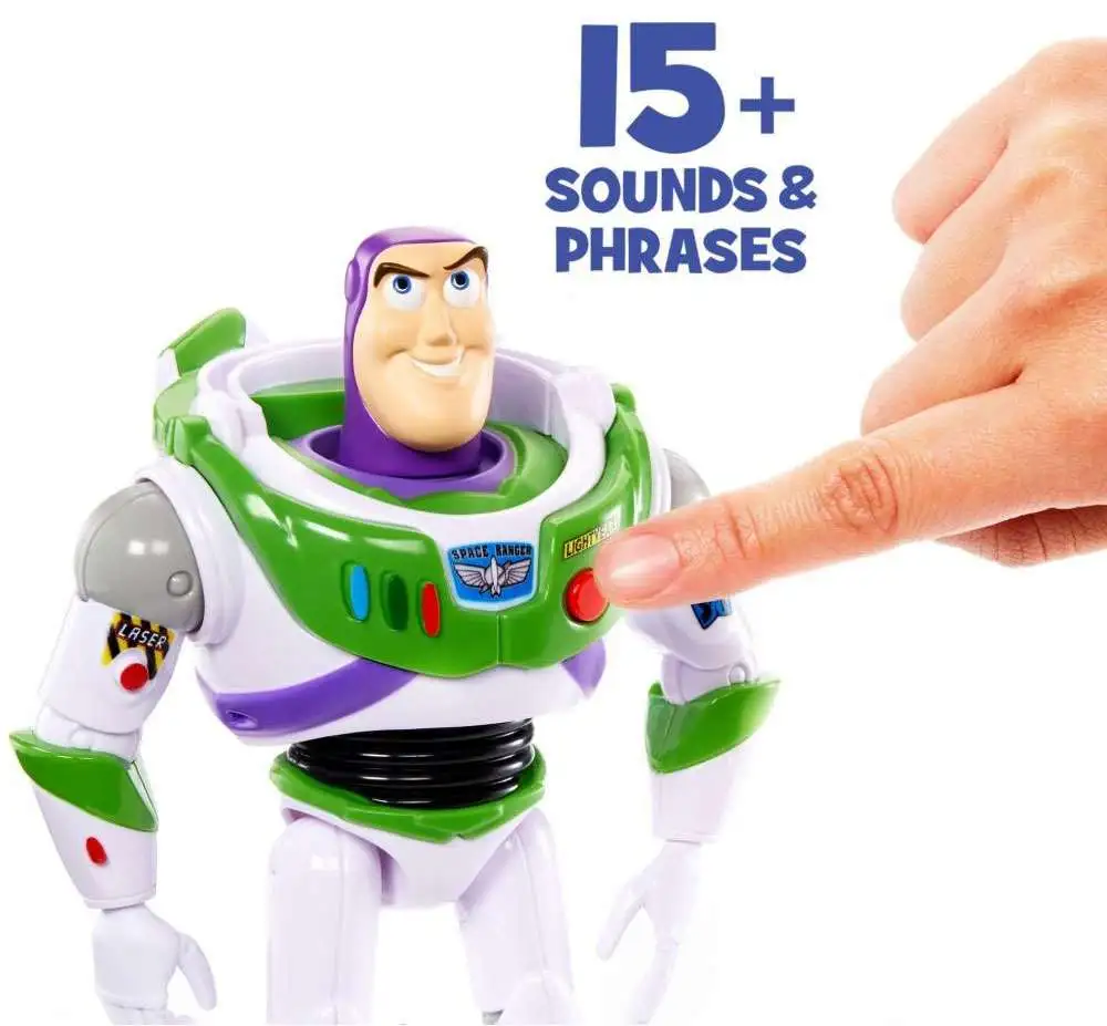 Disney/Pixar’s Toy Story fans get exciting new movie play with this talking figure! Buzz Lightyear comes to life with 15+ classic expressions, a unique talking facial expression and famous lines like, “To Infinity and beyond!” and “Buzz Lightyear, Space Ranger.” Recreate your favorite adventures with Buzz and also choose his friends. Each delightful character comes in movie-inspired relative scale and is highly posable for exciting action play. The figures also come in “Try Me” packages to hear their lines in advance. Each sold separately, subject to availability. Colors and decorations may vary.